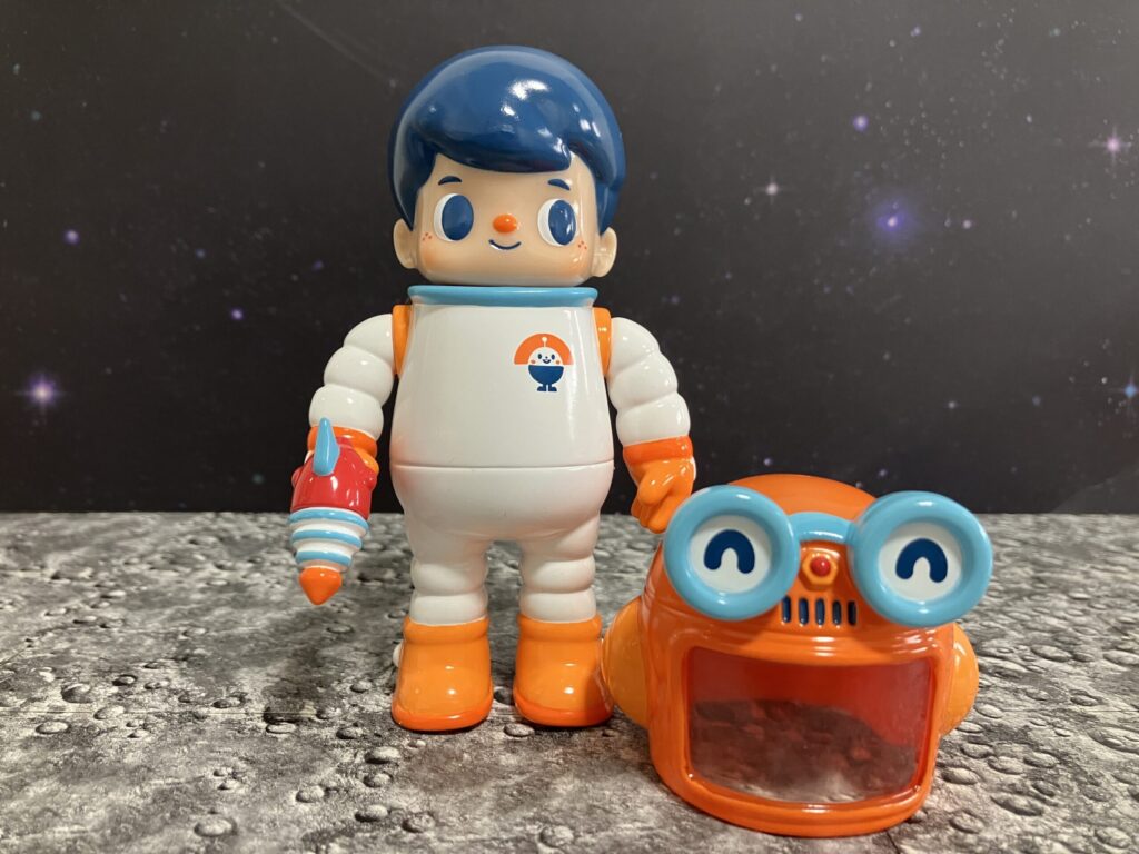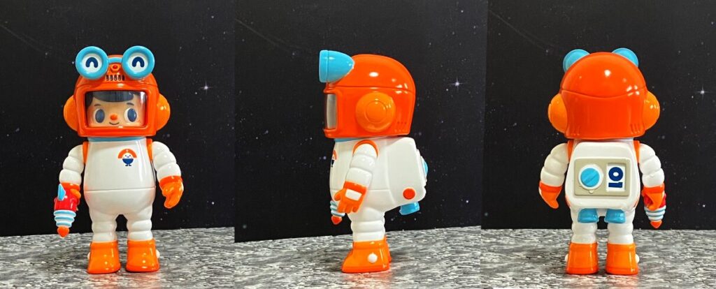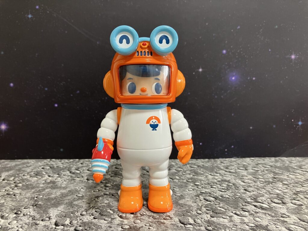 まずは一際目を引くオレンジ色のこちら。インドネシアのグラフィックデザイナー・トイデザイナーであるKong Andri(コン・アンドリ)氏が生み出したキャラクター「Owangeboy」の宇宙飛行士バージョンです。