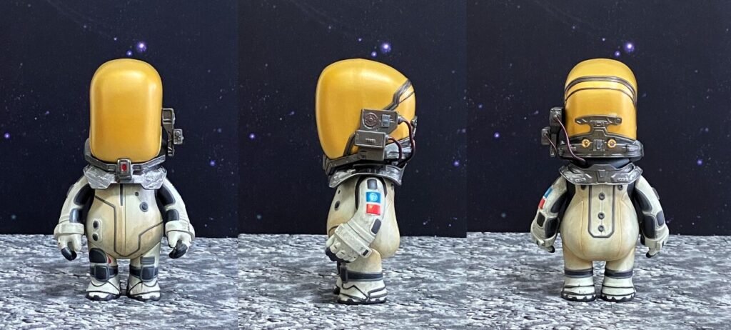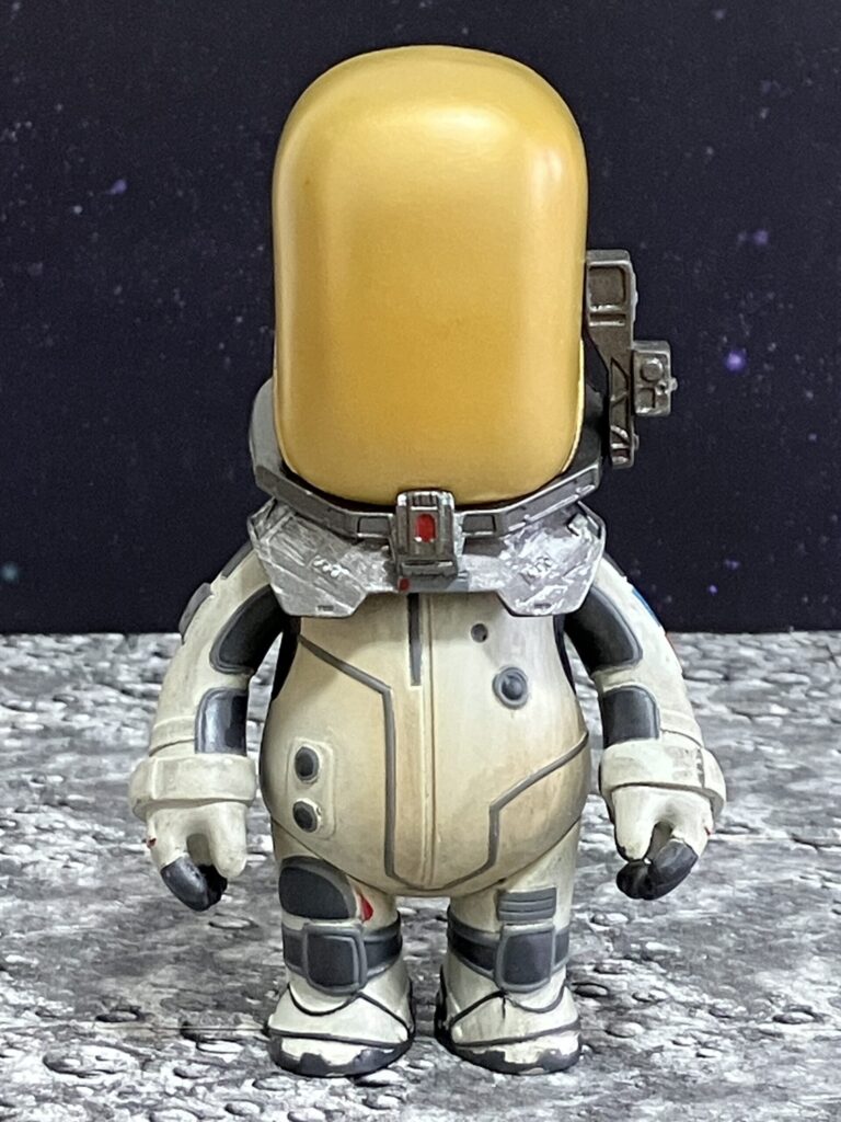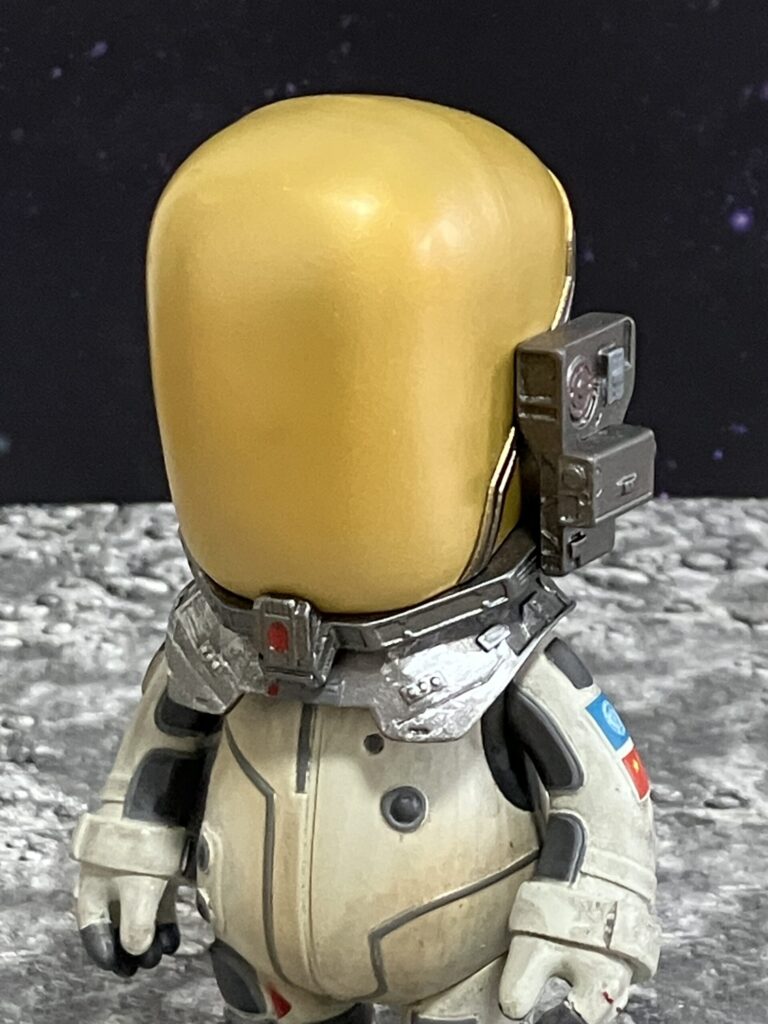ゴールドのバイザーが印象的な本格的な宇宙服姿で、映画劇中の宇宙でのミッションシーンを彷彿させます。さすがはthreezeroの製品だけあって、バックパックや各部のパネルラインなど、小さいながらも細部までこだわりの造形が詰め込まれています。使い込まれた質感のウェザリング塗装も施されており、飾るだけでかなりいい雰囲気です。