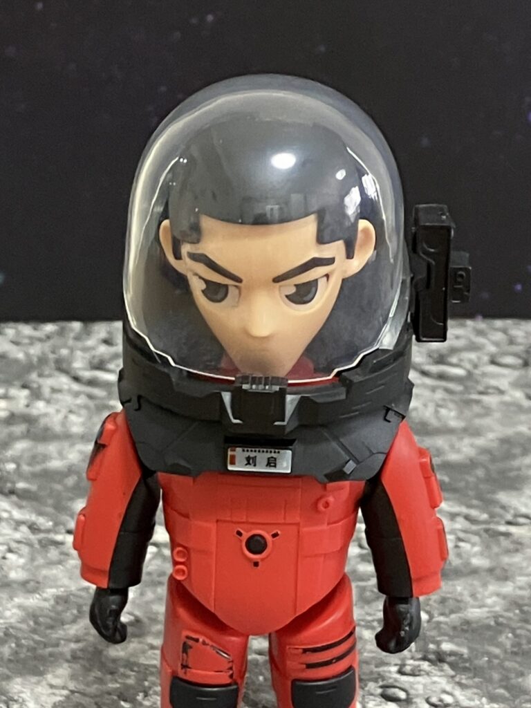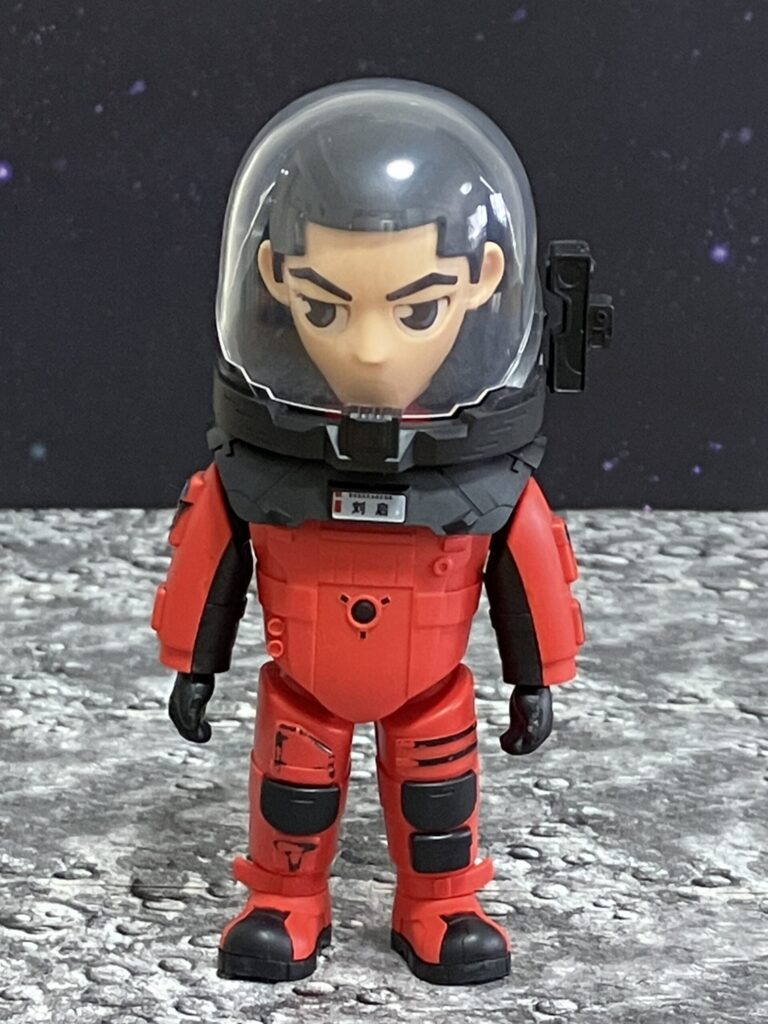 フィギュアの胸元には「刘启」の文字が確認でき、これは主人公の一人であるリウ・チー。赤と黒の重装備な宇宙服がリアルに再現されていて、クリアドームのヘルメットの中のキリッとした表情も映画のキャラクターの雰囲気をよく捉えています。映画の外骨格スーツのゴツいディテールがデフォルメ体型にギュッと凝縮されているのが面白いところです。ヤンチャな妹ハン・ドゥオドゥオ(韓朶朶)のプラモデルも商品としてラインナップされています。
