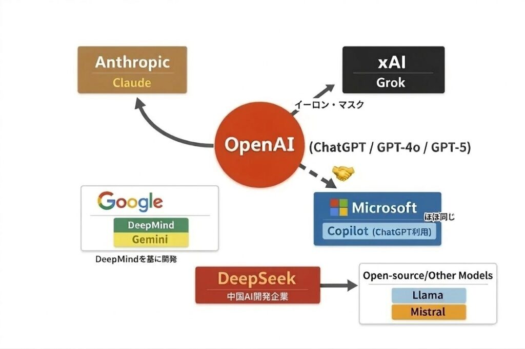 AI業界は「会社」だけでなく、人のつながりで見ると理解しやすくなります。